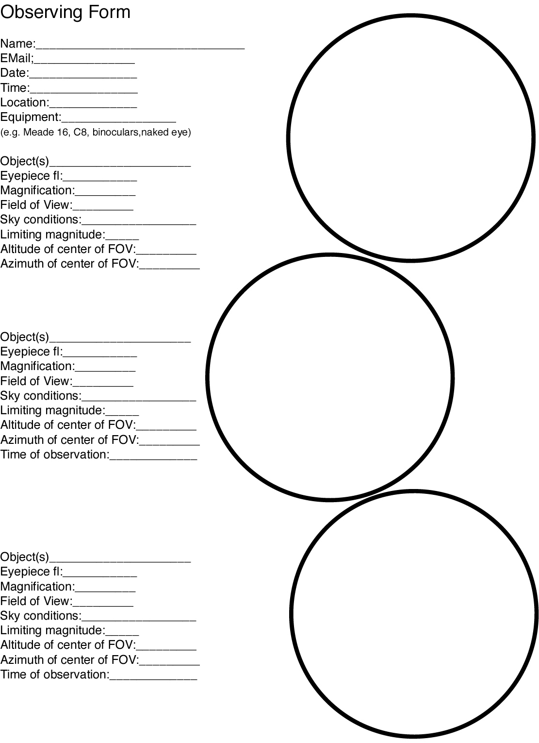 There will be at least four evening sessions, but we get clouded out a lot, so be sure to come to the first possible session you can! Or, you can go the "George Observatory" (in Brazos Bend State Park) any clear Saturday evening. (We may do a campout, date TBD)